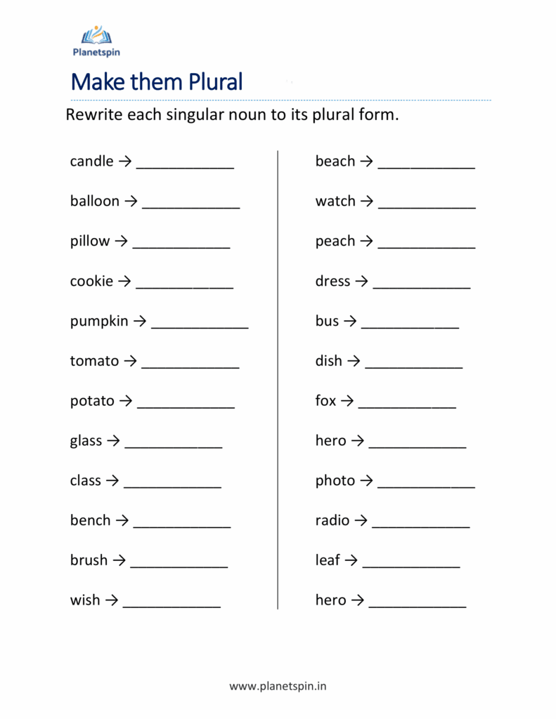 Writing plural nouns for grade 1