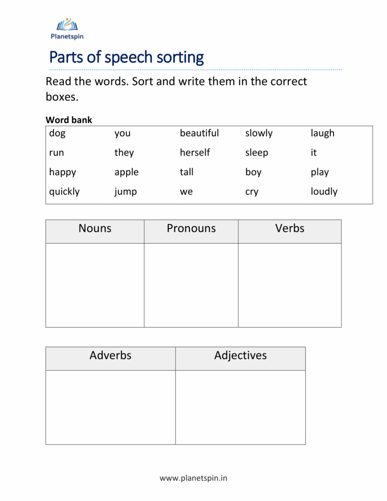 Parts of Speech Worksheets: Explore Nouns, Verbs, Adjectives, Adverbs